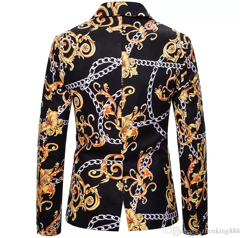Mens Blazer Jacket Vintage Tiger Head Printed Men Blazer Slim Fit Rose Floral Mens Suit Jacket Blazers