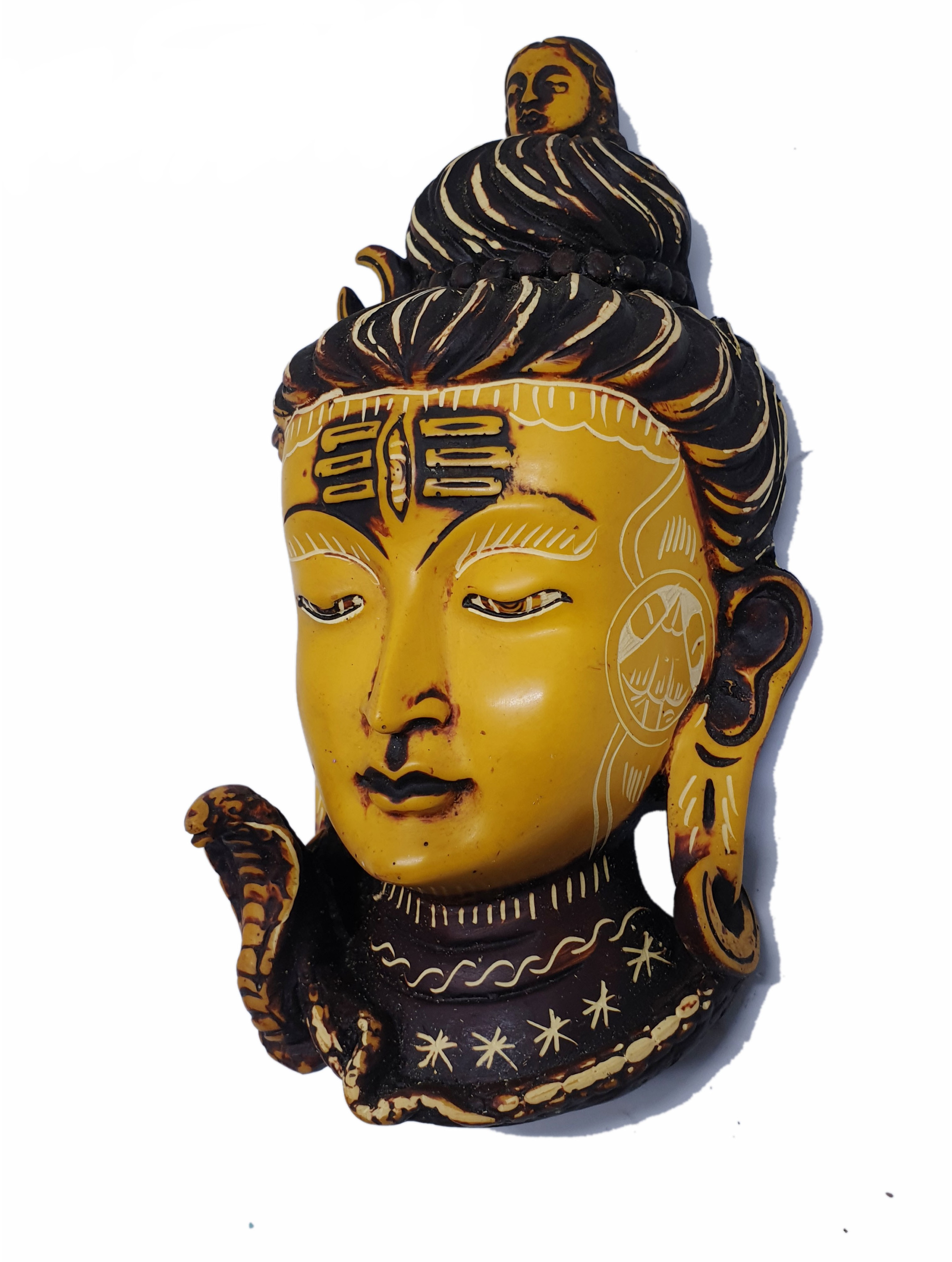 Yellow Color Shiva ji, Lord Shiva Face Wall Hanging Resin Statue Nepal, Nepali Antiques by Himalayan Yeti Store